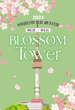 N서울타워는 연인들이 남산에서 여유로운 휴식과 함께 사랑을 꽃피울 수 있는 'Blossom TOWER' 페스티벌을 개최한다고 합니다. 서울 도심보다 온도가 2~3도가량 낮아 서울에서 가장 오랫동안 벚꽃을 관람할 수 있는 N서울타워는, 한눈에 담기에 벅찬 아름다운 서울 도심의 봄향기를 선물 받으면 좋을 것 같습니다.